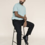 Effortlessly stylish in a relaxed mint green tee, tailored black pants, and sleek black boots. This look blends comfort and sophistication, perfect for contemporary everyday wear or casual professional settings.